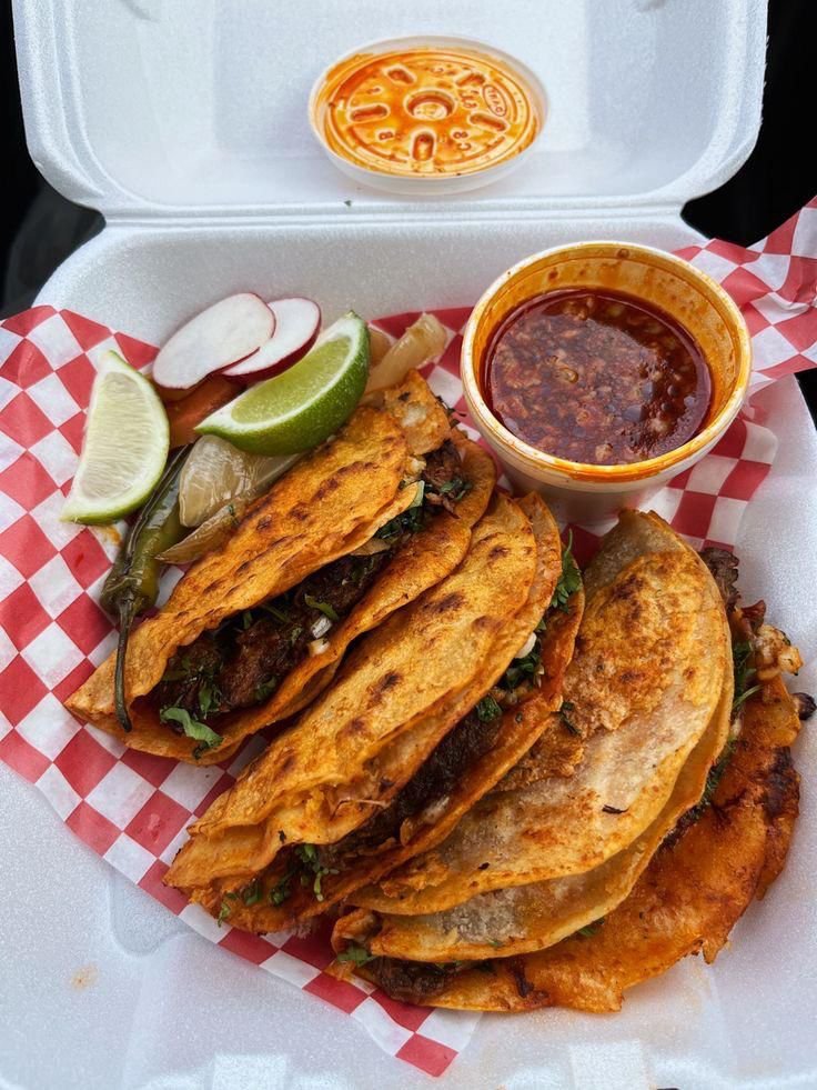 3 quesabirrias with cheese, birria meat onions, cilantro and 4 oz consomé on the side